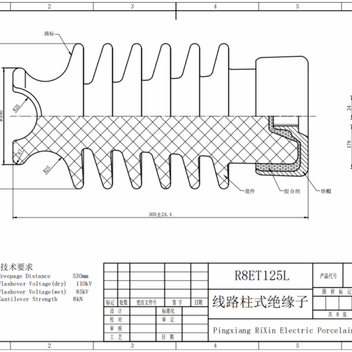 | Low frequency wet flashover voltage | kv | 60 | 85 | 100 | 125 | 150 |